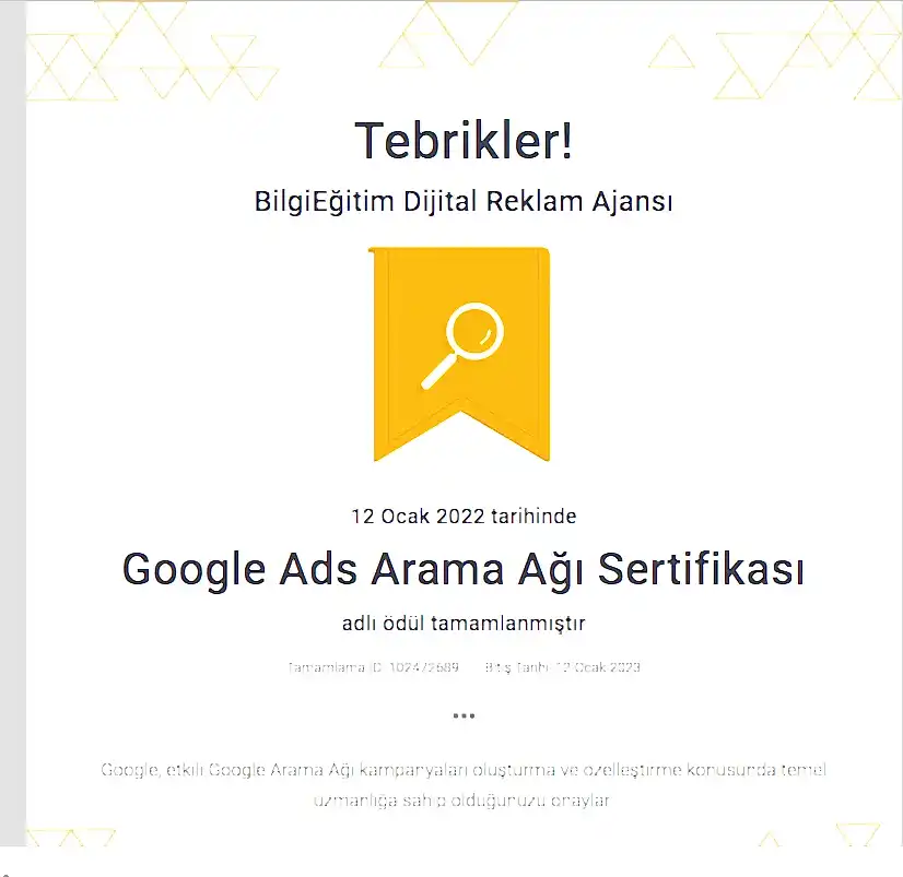 Google Ads Sertifikası Google Ads Başarı Sertifikası E-Devlet Onaylı Google Ads Sertifikası